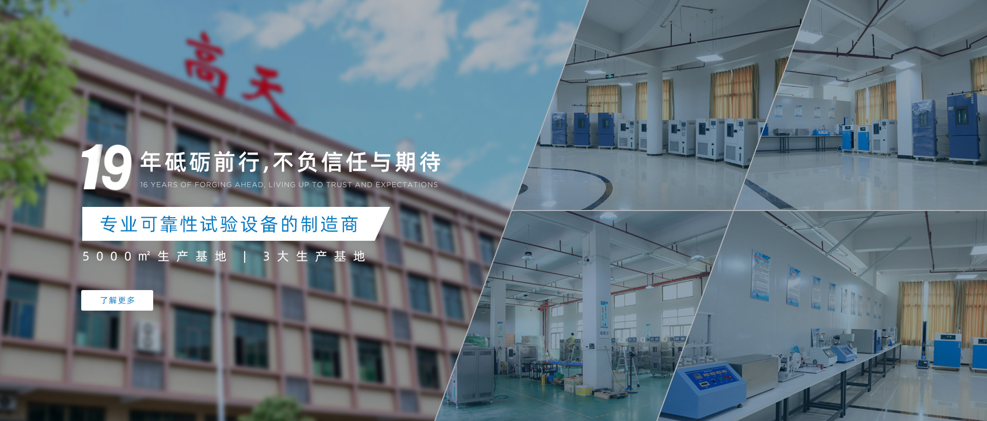 東莞市高天試驗設備有限公司是一家可靠性試驗設備的制造商,我們專注于可靠性試驗已有19余年,在此期間,我們竭盡所能,努力為客戶提供完善的實驗室規(guī)劃方案,匹配質優(yōu)價廉的試驗設備。高天擁有完整的研發(fā)團隊,其中有很多人都躋身試驗設備行業(yè)多年,能為顧客提供完善的技術方案,以幫助廣大客戶在確保其產品品質的前提下,有效降低經營成本,提升經營競爭優(yōu)勢。高天生產的設備種類眾多,同時擁有實用新型專利證書,銷售范圍覆蓋全國。公司自成立以來堅決以精美的外觀設計,認真務實的工作精神,良好周到的后續(xù)服務,贏得了客戶良好的口碑。我們將一如既往,堅持以“誠信經營”為...